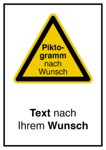 Eigenes Piktogramm oder Wunschtext auf Warnschild/Warnzeichen bequem online anfragen